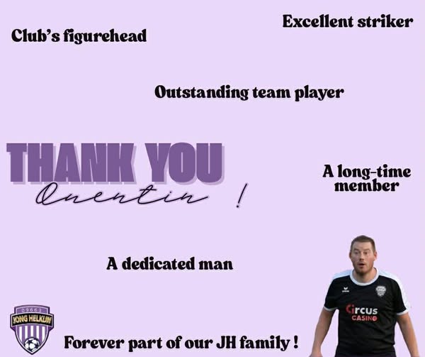 Zondag nemen we afscheid van Quentin. L'attaquant termine sa carrière dans notre club. Tijdens de periodes 2008-2010 & 2020-2026 was Quentin te bewonderen op onze velden. Nous te souhaitons tout le meilleur pour l'avenir, Quentin.